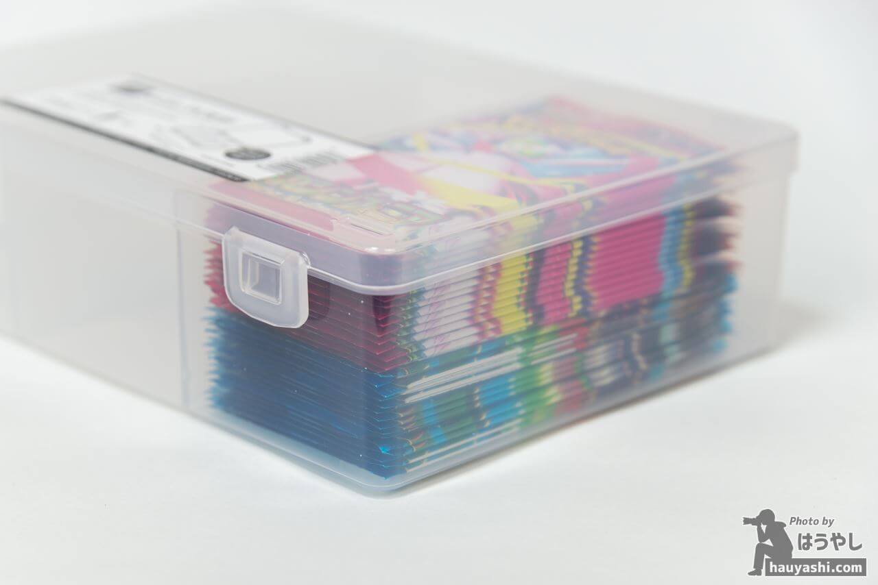 同様に、ナカトシ産業「TCG トレカ用プラスチック薄型カードケース」も収納できることを確認しています。