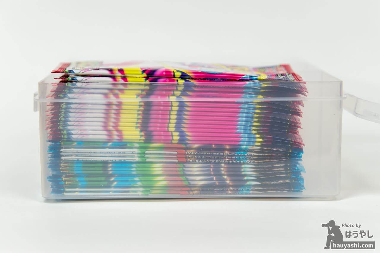 そこで今回は、100円ショップで購入できて、未開封パックの大量保管に優れている製品をご紹介いたします。