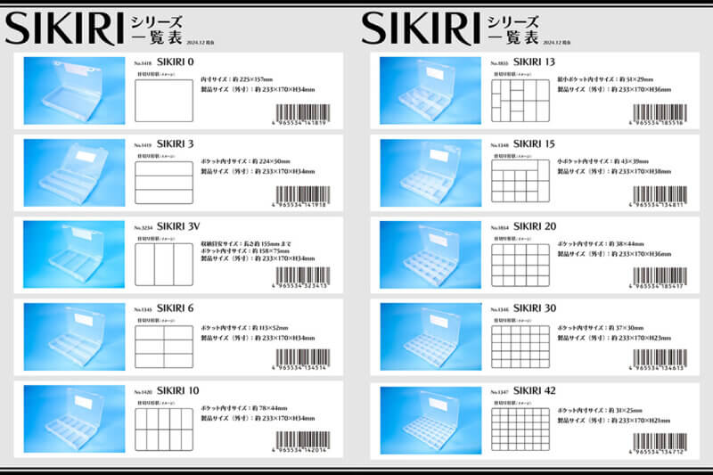 SIKIRIシリーズは、ジャンルを問わず様々な小物などを収納するために作られた収納ケースです。今回ご紹介するSIKIRI 3V以外にも、仕切り方が異なる複数の種類が販売されています。